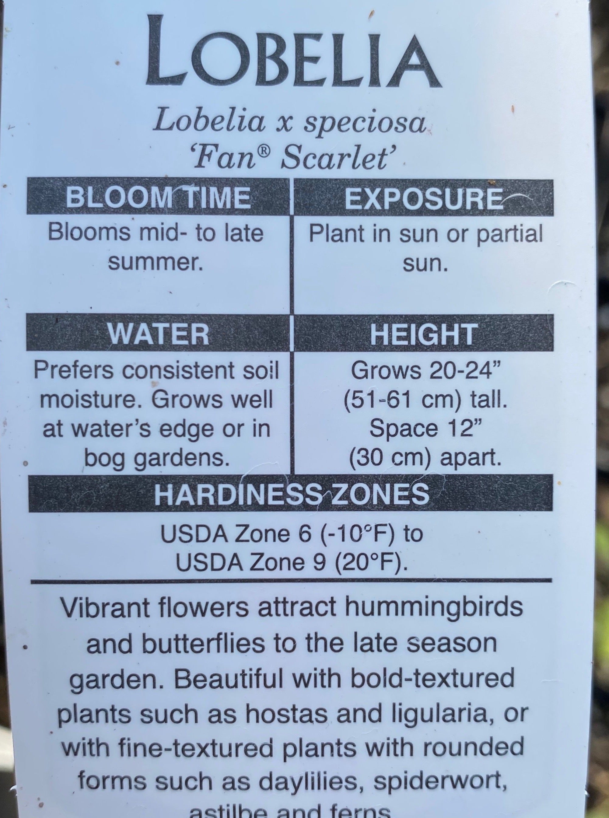 LOBELIA, FAN SCARLET (CARDINAL FLOWER)